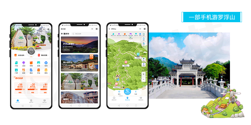 巨有科技为罗浮山提供了智慧景区综合管控平台,包括云票务系统、智能导览、智慧餐饮系统、智慧停车系统、智慧民宿系统、手信电商系统软硬件设施。