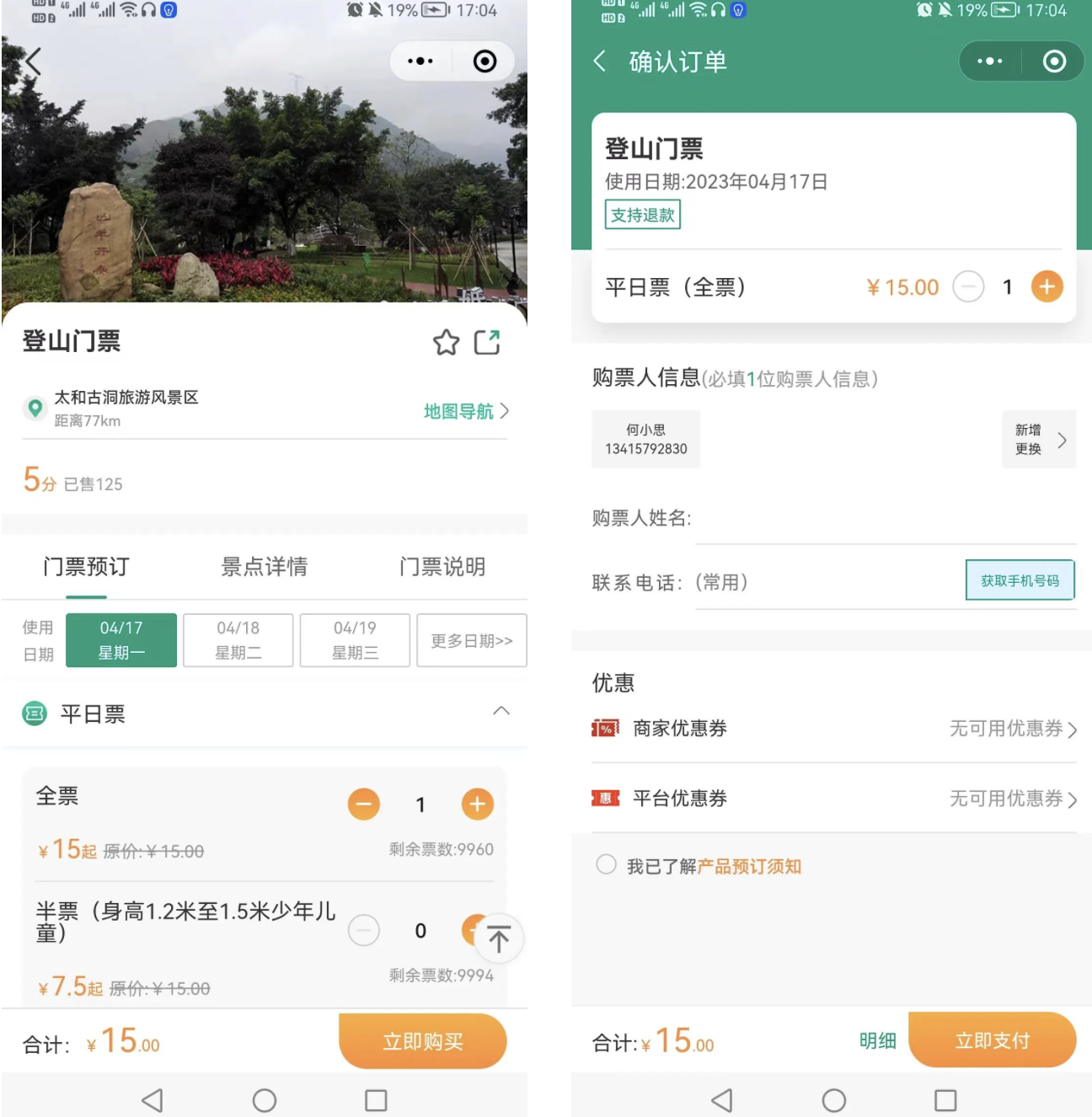 太和古洞景区票务管理系统升级后,游客可以通过线上平台在线购票,生成电子二维码直接入园,票务线上化使得购票变得更加方便快捷,消费者可以随时随地通过网络购买景区门票,无需排队等待。