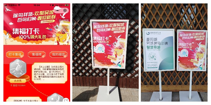 与巨有科技达成全域旅游建设智慧景区的江西吴城候鸟小镇,2021年1月1日春节前也合作推出了景区集五福打卡活动,设置5个热门景点作为打卡点,活动上线后,吸引了无数游客现场游玩互动打卡,为景区提升了旅游收益。