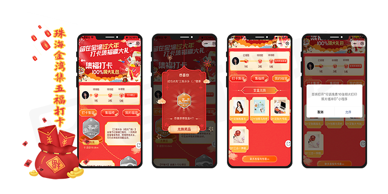 继佛山集五福活动之后,巨有科技还与珠海金湾文旅局签署完“留在珠海过大年集五福”活动项目运营合作,开发出轻量版一机游金湾小程序页面,让金湾本地及外地游客通过小程序上参与游玩景区集五福打卡活动兑换文创礼品。