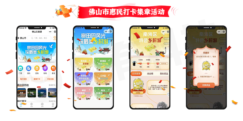 2021年春节巨有科技有限公司与佛山文化旅游体育局达成战略合作,由巨有科技组织策划了“留在佛山过年”集五福打卡活动,深受游客市民喜欢,整个活动线上开展一个月:佛山集福打卡有131427条记录,领取佛山畅游卡38576张;到达景区打卡人数58812人。形成从线上导流到景区或商家,助力文旅市场消费。此次通过“畅游佛山文旅惠民活动”整合佛山市吃住行游购娱各个方面、串起商圈、餐饮场所乃至景区等各种消费业态,形成区域性的消费热点和经济增长点。通过任务式地标集章增加畅游趣味的同时形成多个点的联动,从而拉动佛山旅游经济收益和增长,促进文化和旅游消费升级,带动佛山文化和旅游消费市场的繁荣发展,本次徽章打卡活动由巨有科技免费提供20万份专属景区文创纪念品和10万份佛味全席文创纪念品,总计投入30万份文创纪念品,价值约300多万。