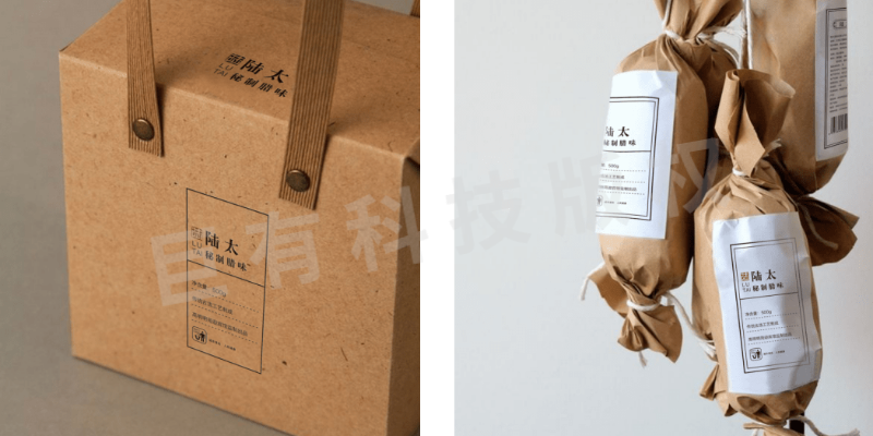 在包装上采用了牛皮纸来包装,主要体现陆太的淳朴、天然的理念,再加上特色食材的插画能让受众感受到陆太在取材制作方面的用心。在标签上体现了简约中式的风格,在品牌名称上以陆字印章形式结合陆太的中英文组合展示。整个包装给人有一种很强的视觉冲击力而且能提升食欲感,简约而不简单。