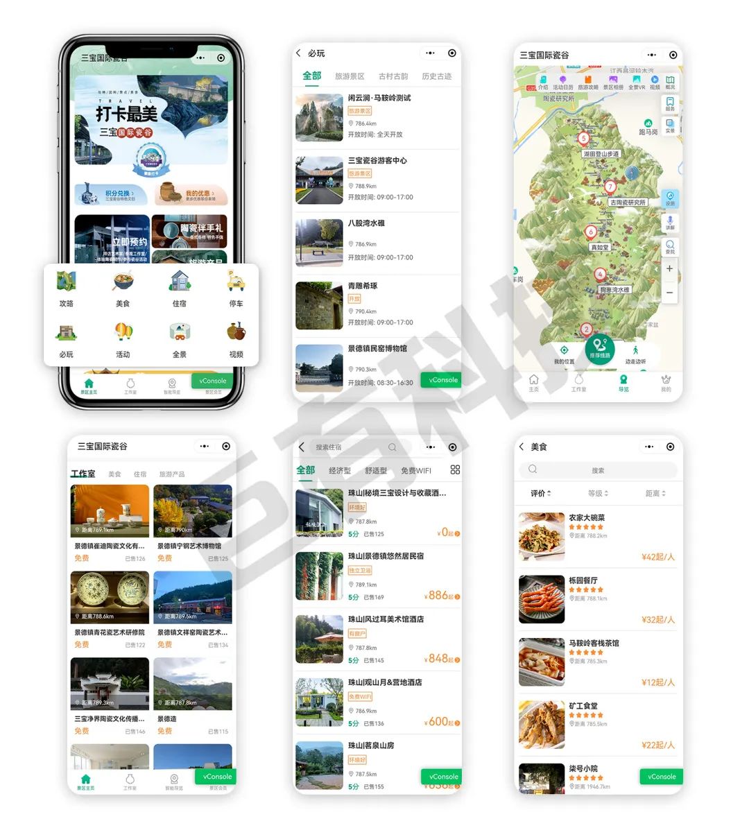 巨有科技通过数字化平台,布局产业新赛道,把资源整合成产业链是非常重要的一步,只需一部手机,一个旅游服务平台便可轻松搞定。也就是说三宝国际瓷谷通过“一部手机游三宝”平台成功接入美食商家25家,酒店民宿13家,让文旅产品和潜在客户实现精准对接,通过拓展市场范围,增加销售渠道。推动开展三宝村陶瓷文化的营销宣传、旅游信息展示、文旅产品在线预定等数字化营销业务,实现数字化营销。