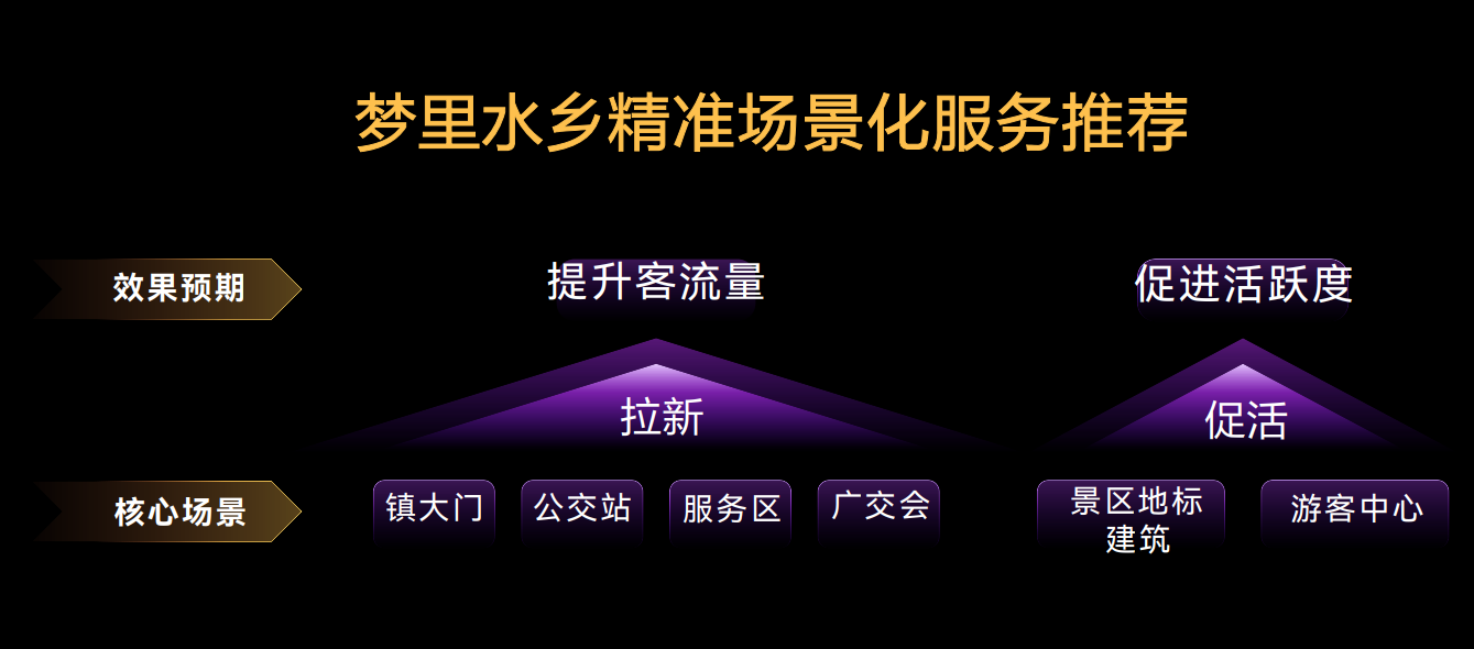 梦里水乡元服务,基于用户授权,梦里水乡元服务可以准确确定用户地理位置、识别用户停留时长,并按照时间维度提供符合当前场景的推荐,将里水的旅游资源和内容精准地推送给游客,如热门景点推荐、电子导览、吃喝玩乐等内容推荐,为里水游客提供丰富的游前、游中、游后一站式智能出游服务。