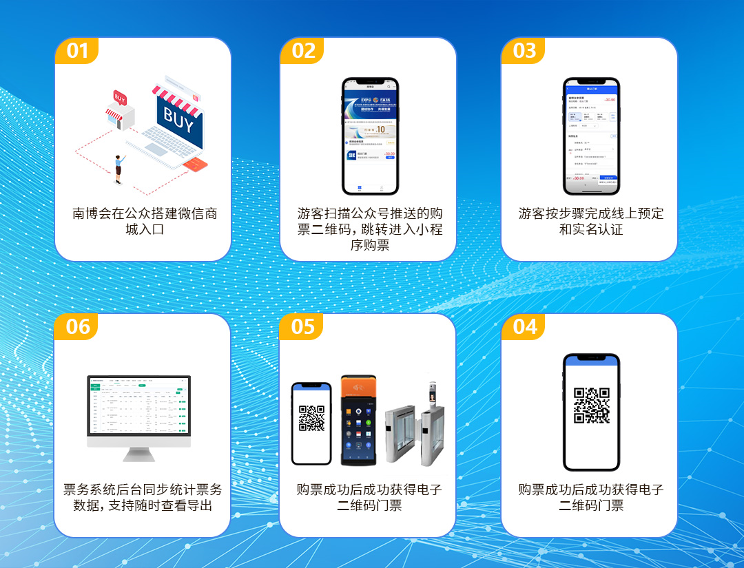 巨有科技通过自主研发和技术攻坚,为展会举办方和参观游客提供安全、可靠、互联、创新的票务服务。面对几十万的客流量,我们的系统提供了“线上门票预定、全实名购票、全实名参观、人脸识别”的票务系统服务,为游客提供了快捷的门票入场服务,提升南博会整体的管理效率。