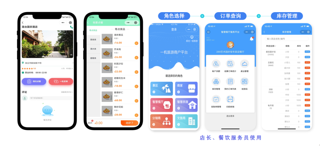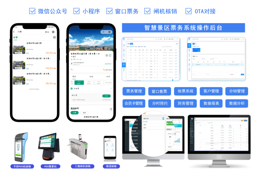 ✅ 采购了检票闸机、身份证、手持机收银、停车道闸、车位显示屏、餐饮打单机、餐饮收银机、扫码盒子等一批智能化硬件设施,简化了购票、住宿、就餐及停车流程,实现了旅游服务和管理的全面智能化升级。