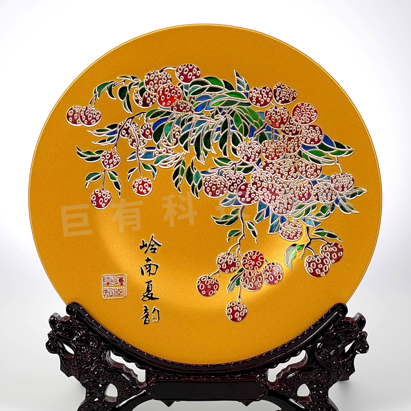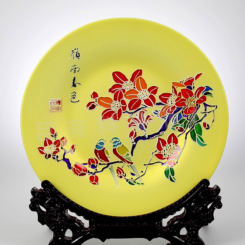 雅琅晶双面雕刻彩盘由于巧妙的利用了玻璃的透性及凹凸雕刻的对称表现,镂空及浮雕相得益彰加之绚丽色彩的表现,使得彩盘宛如一件工艺艺术品。