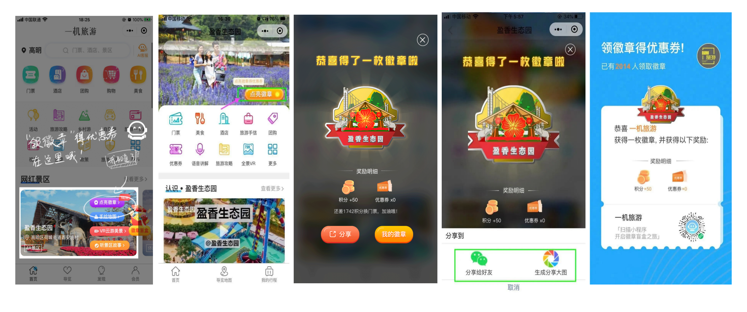 徽章打卡奖励(景区商家让利促销费):