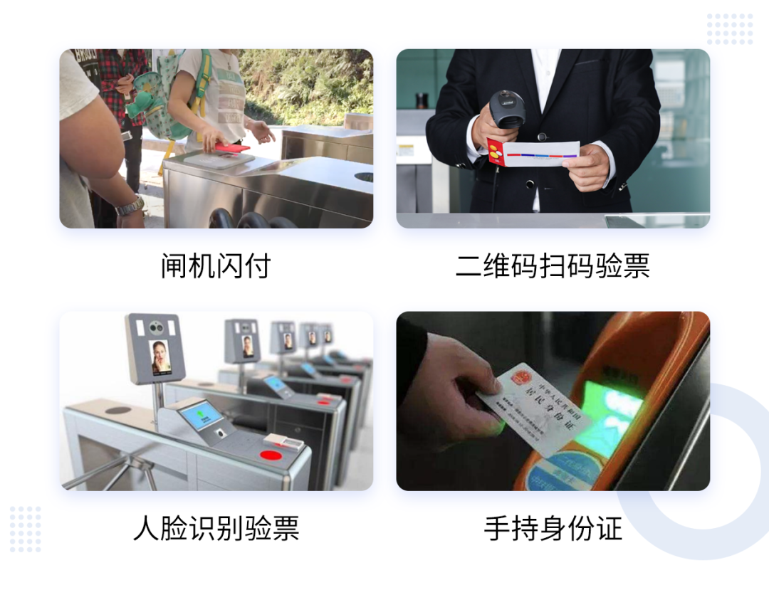 智慧云票务系统的验票可支持闸机二维码验票、手持机身份证、IC卡验票、人脸识别验票等四种验票模式。让验票方式多样化,满足景区不同场景需求。