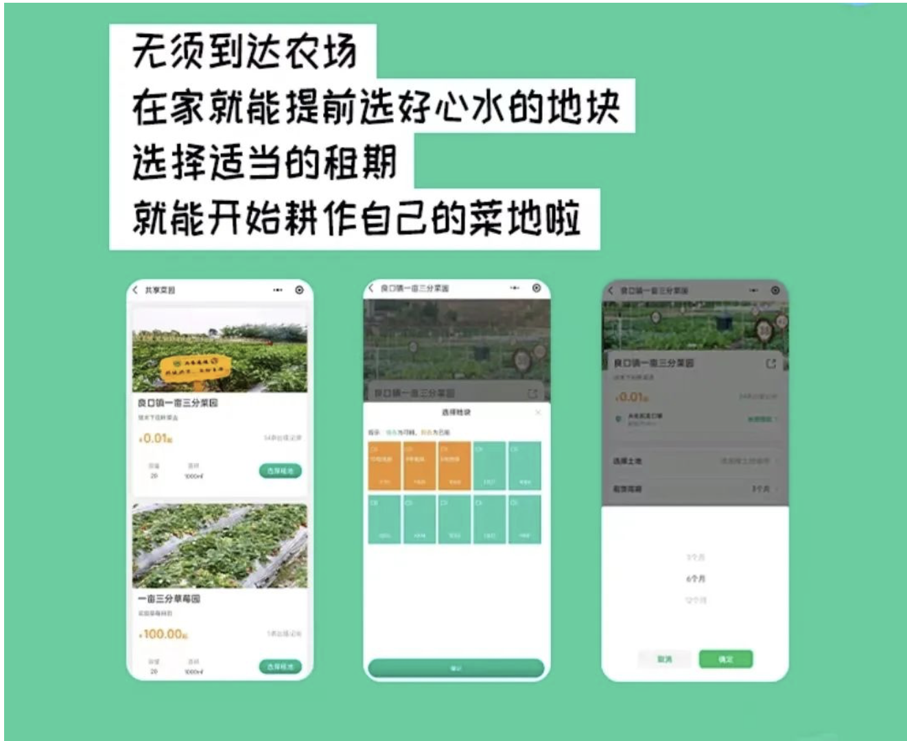 顾客能够在平台查看农场情况,认养半亩或一亩农田,即可成为农场的“庄主”,开启“服务+体验+产品”的田园生活方式。