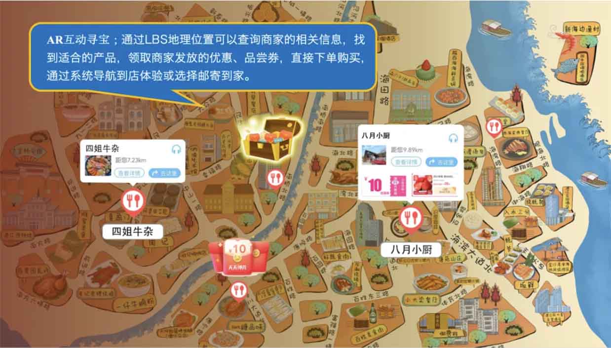 让用户主动探索,增加趣味性满足好奇心,引导用户去景点重要位置寻宝,集齐宝贝换取实体奖品,优惠券、或者现金红包等促使消费。旅游+游戏,增加用户乐趣和成就感;提高景点和商铺知名度,优化景区人流量。以后,我们将进一步增添互动功能与场景,用户可一键上传自己所拍摄的全景内容并在其中藏宝,商家也可藏优惠券等。