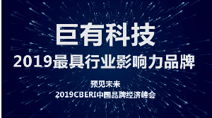 019CBERI中国品牌经济峰会,巨有科技荣获“2019最佳行业品牌奖”