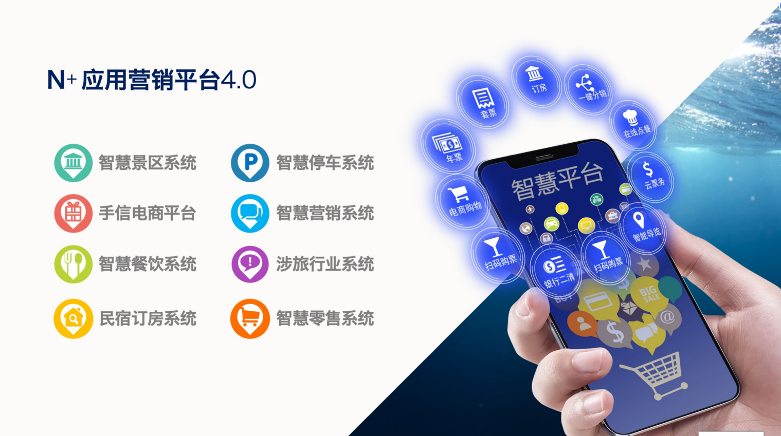 基于全域旅游公共服务平台,将技术赋能到各大涉旅企业,解决县域旅游资源分散、地方旅游数量太少、游客人均消费太低、旅游数据统计模糊、游客人均消费太低、涉旅企业管理繁琐等痛点,让涉旅企业商家获得更好的智慧管理、营销提升。同时,加入平台头部涉旅企业构建分销跨销体系,以线上社群形式进行传播裂变。