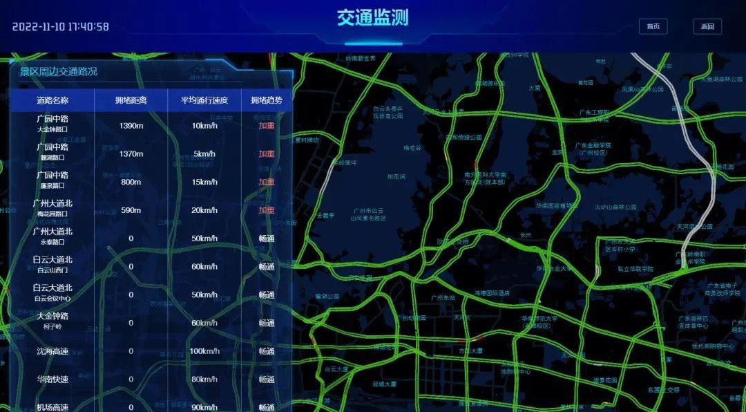 以红、黄、绿三种颜色实时显示监测景区人流量,管理者可实时掌握景区客流情况,当景区人流过多时,可及时采取限流等措施,谨防人流越来越多,导致危险事故的发生。
