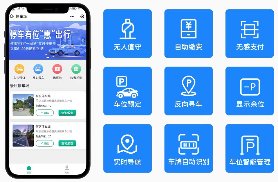 传统景区频发的除了入园拥堵以外,也常常面临车辆拥堵和停车难的问题,而智能停车管理系统可以有效解决这一难题。景区智慧停车系统,打通数据共享和通用支付渠道,将停车场、车辆和用户进行智能化连接和管理,为游客提供停车泊位实时查询、导航服务、无感支付、反向寻车、监督管理等智能化服务。通过手机上GPS等定位技术,帮助游客寻找最近的停车场,并显示剩余车位,准确找到空闲的停车位,避免到达停车场后找不到停车位的困扰,再也不怕自驾游停车难的问题了。