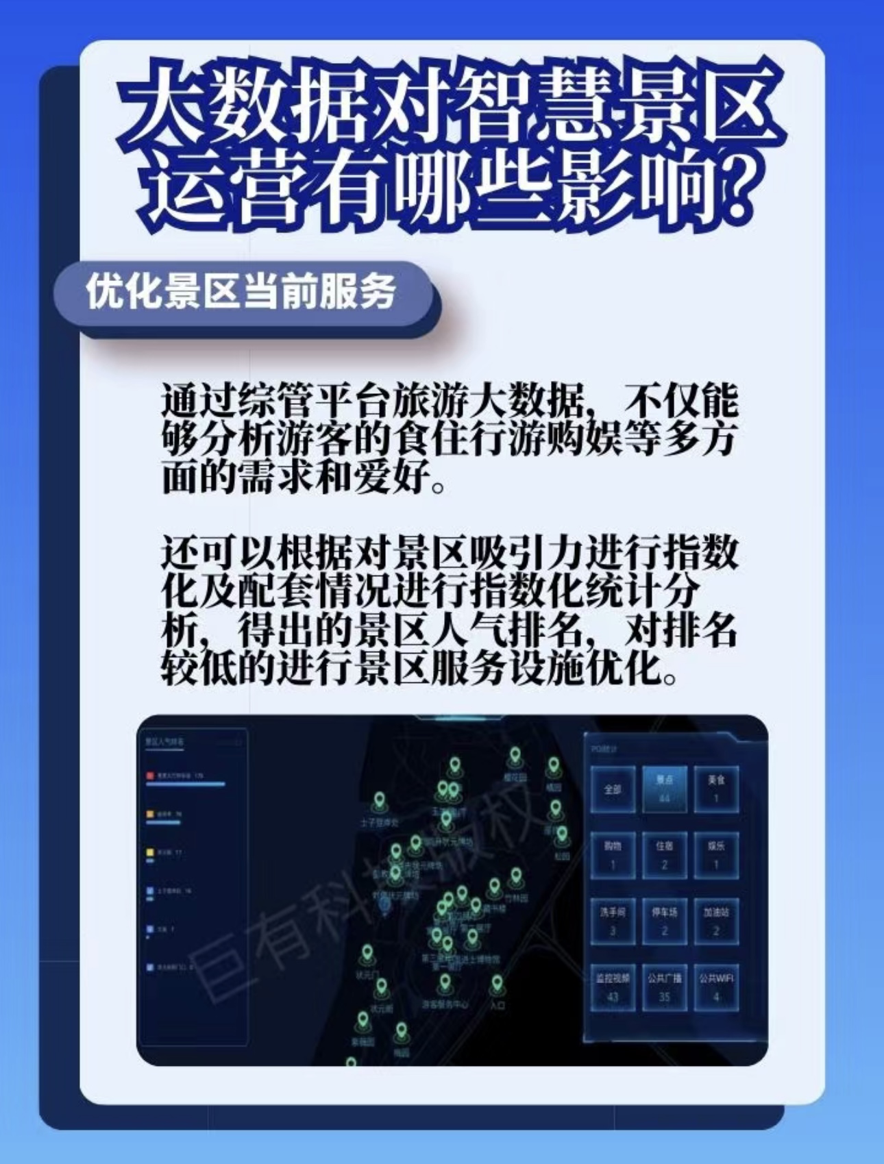 通过综管平台旅游大数据,可以分析游客的景点参观轨迹、停留时间以及其他景区的参观记录,综合游客的年龄、性别等属性,开发适合当前景点或者优化当前景点的服务。